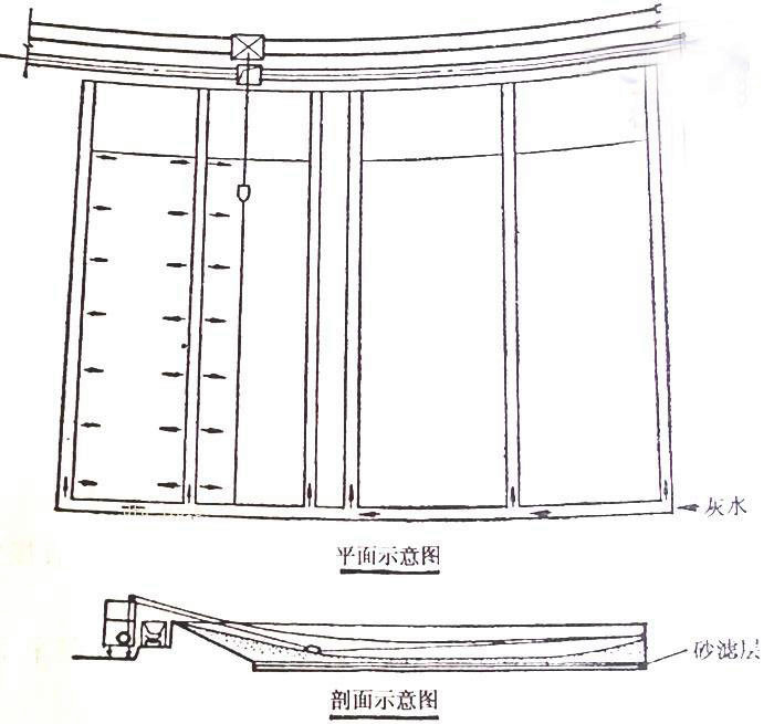 這種沉灰池的構造與前述第一種靜態(tài)脫水池相仿,其計算公式可參照上節(jié)內容。