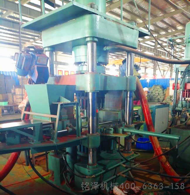 銘澤機械壓塊機在湖北客戶投資生產(chǎn)壓制廢金屬現(xiàn)場